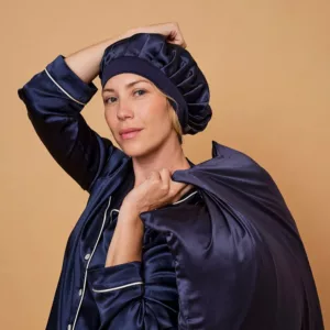 Bonnet de nuit 100% pure soie – Bleu nuit