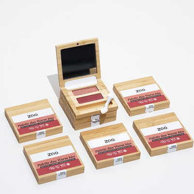 Zao présente un duo lèvres en édition limitée. Dans notre Bambou box duo retrouvez un rouge à lèvres crème Framboise ainsi qu’un gloss crème Rose doré dans un format pratique à emporter partout. Ce duo vous permettra d’avoir des lèvres toujours parfaites. Que ce soit pour un maquillage intense ou bien des lèvres discrètement réhaussées, la palette répondra à tous vos besoins. Le petit plus : une fois vos produits lèvres terminés, vous pouvez recharger votre bambou box duo avec nos ombres à paupières. VOLUME : 2 g / 0.067 oz. PAO (période après ouverture) : 12 mois RECHARGEABLE : Oui MADE IN : Italie